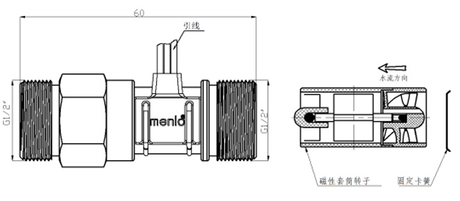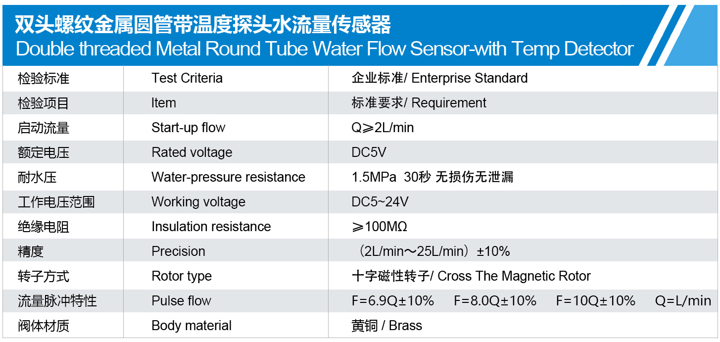 Double threaded Metal Round Tube Water Flow Sensor-with Temp Detector